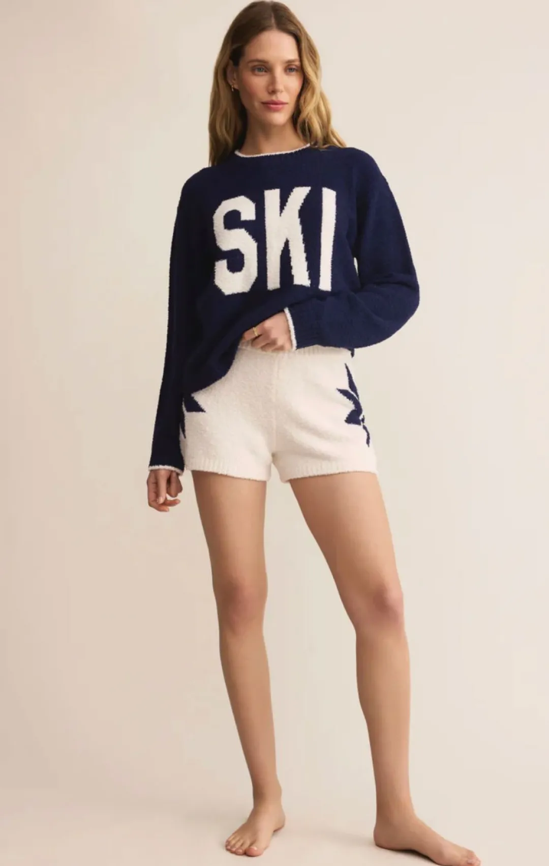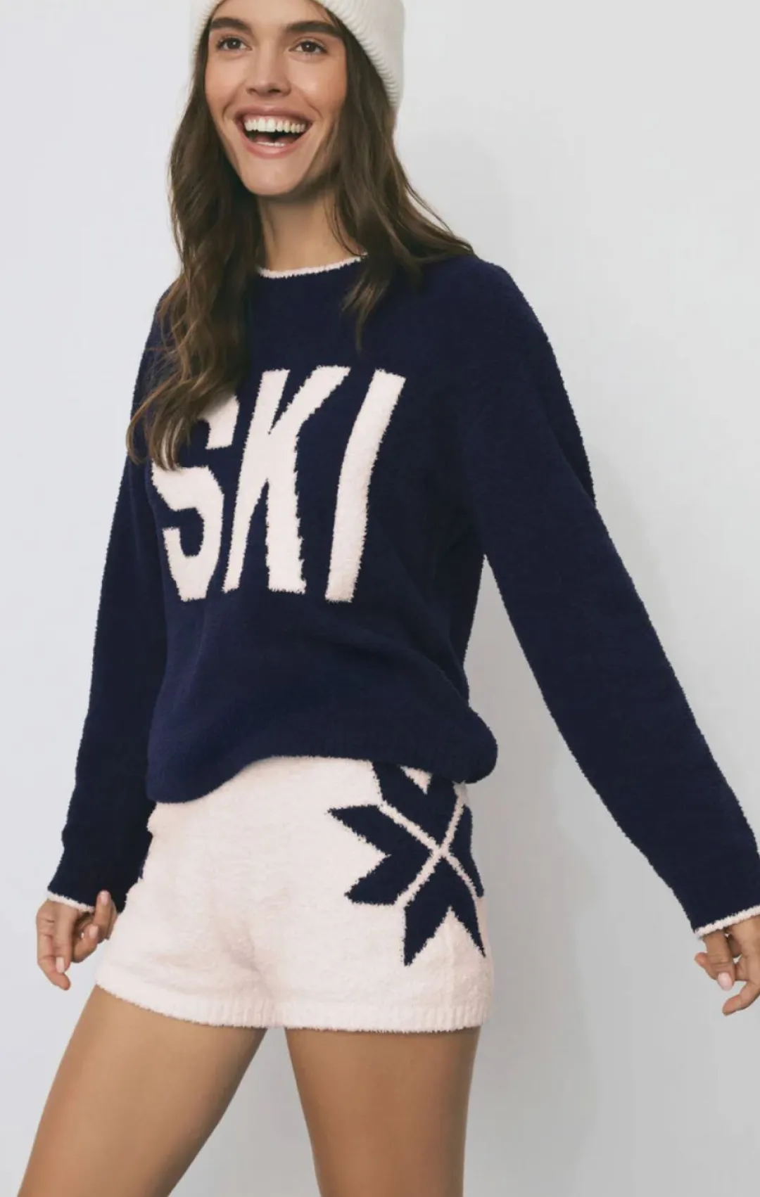 Designed in marshmallow-soft yarn, this high-rise short is as cozy as it is cute. The festive fairisle intarsia adds a timeless winter touch to your lounge rotation. Pair with the Ski Plush Top to make it a set.
