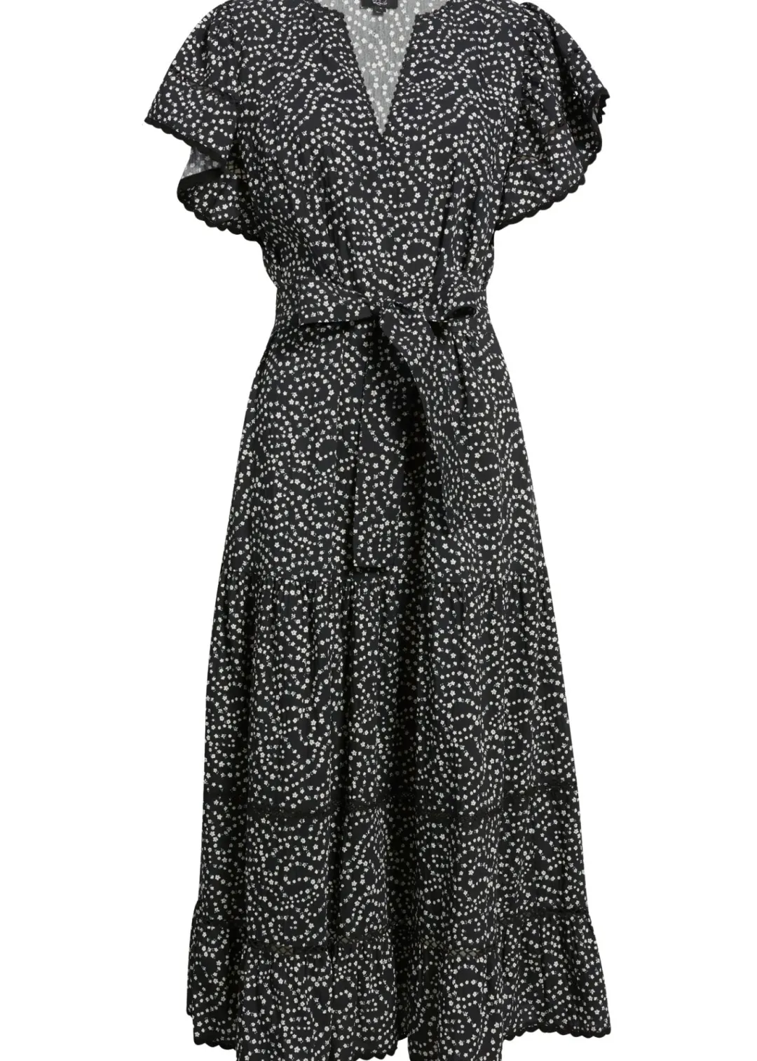 Delicate daisy chains define a supersweet dress tiered in ruffles and offered in a beloved and versatile midi length.