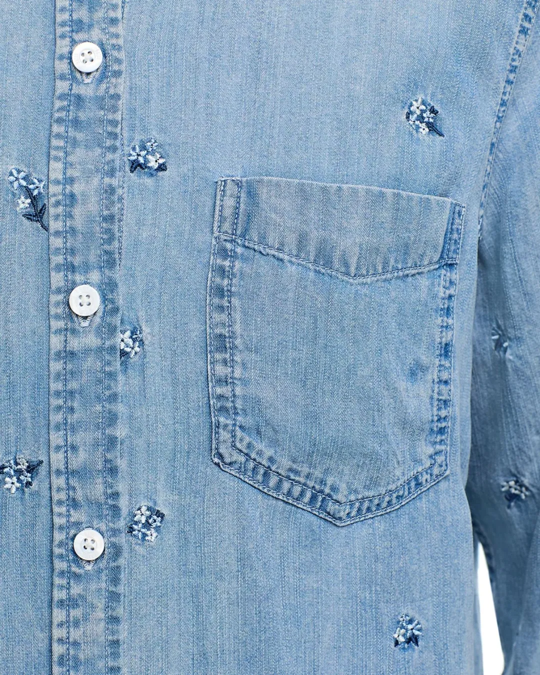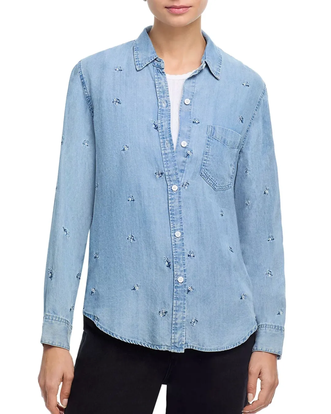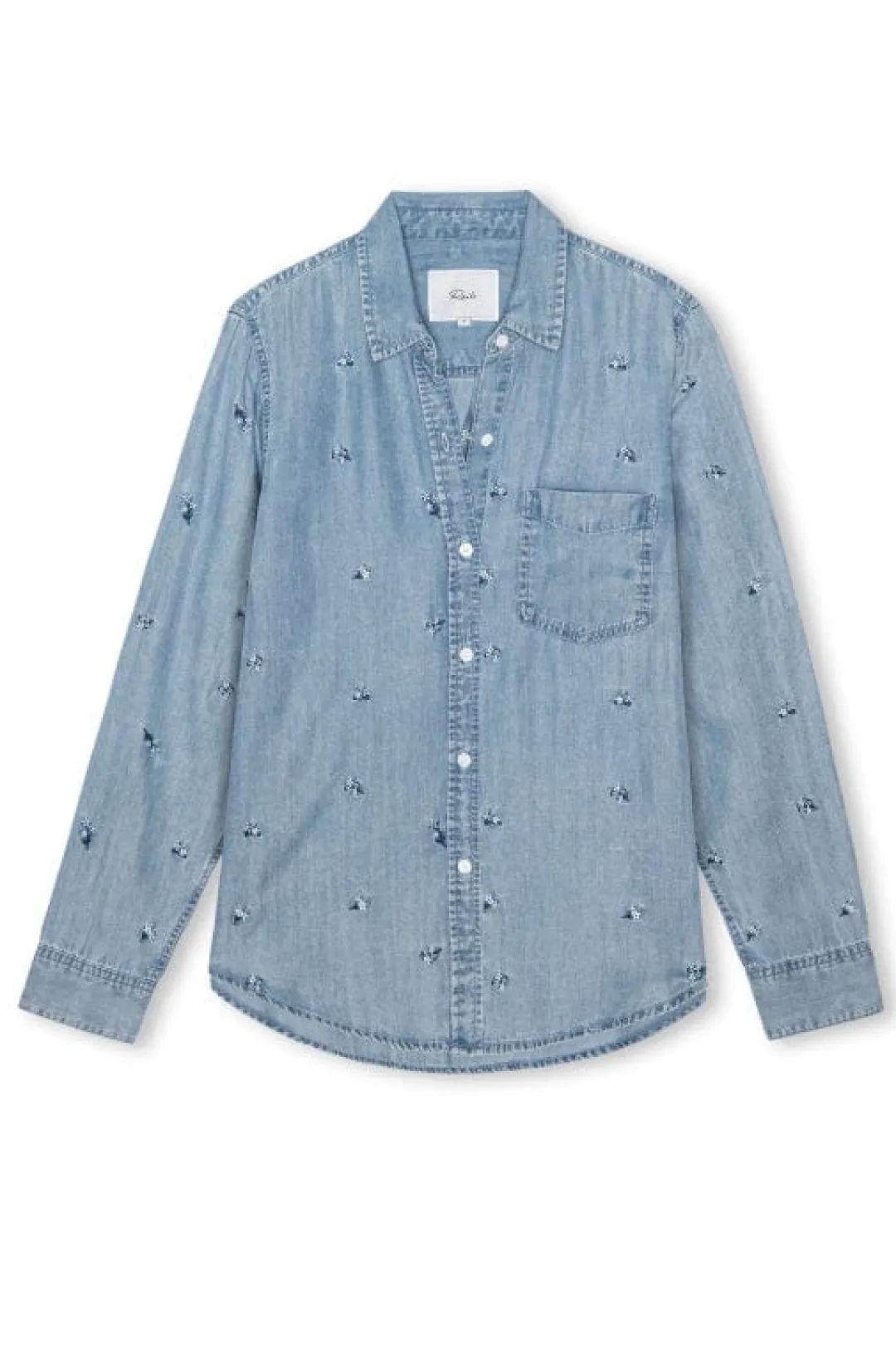 Everyday denim perfected, the Ingrid is super soft and lightweight with long sleeves, button-down styling, vintage-inspired wash, single chest patch pocket, and front buttons.