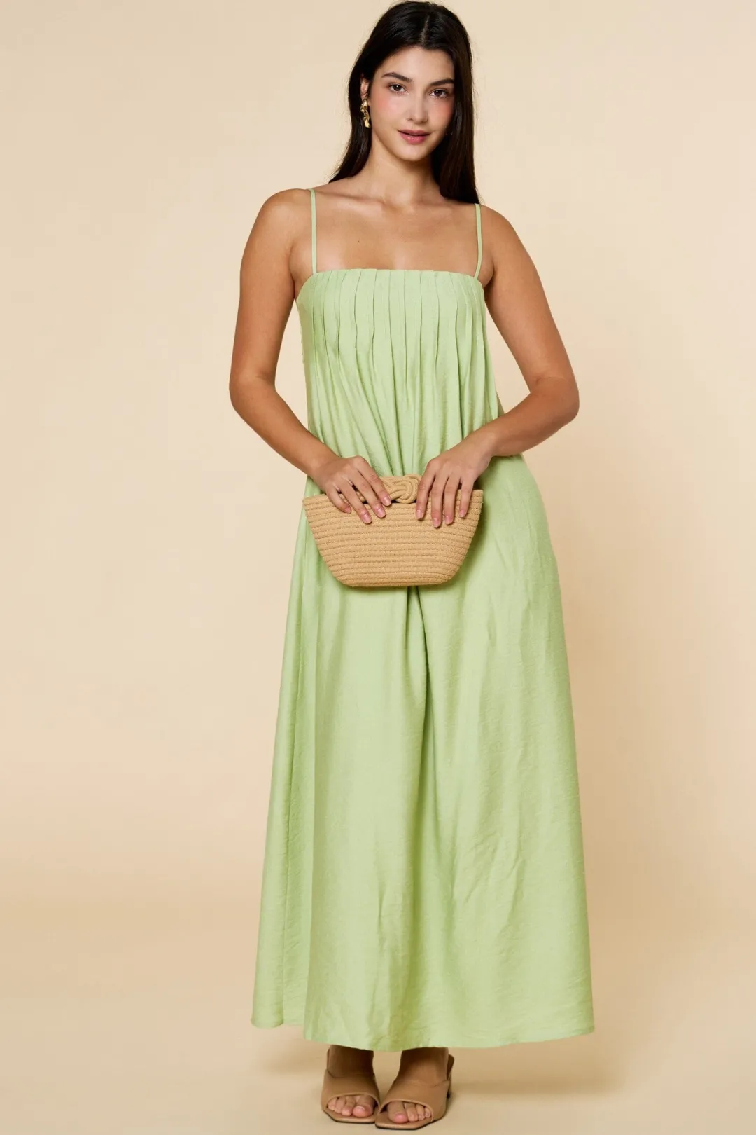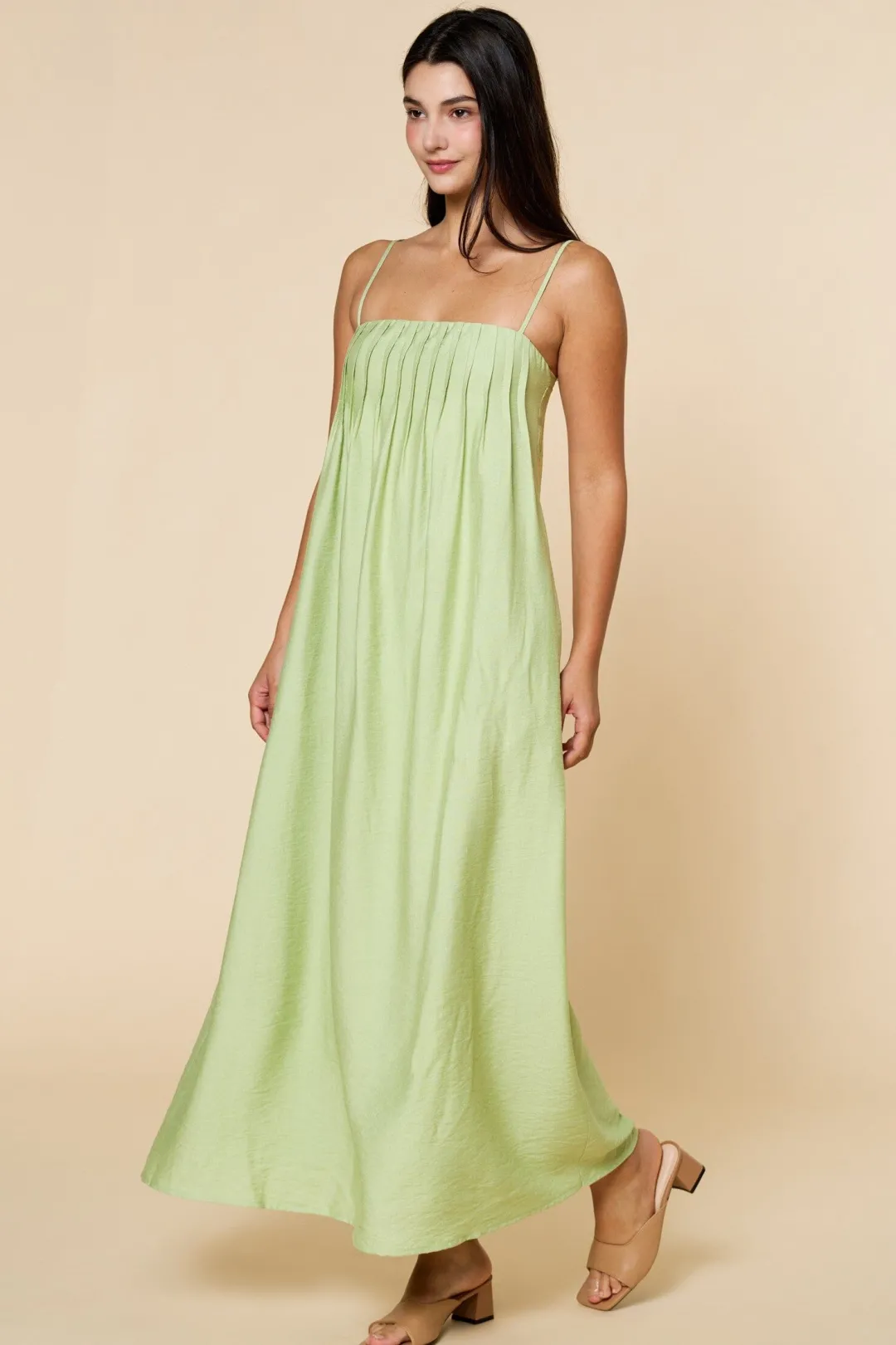 Introducing the Jules Maxi Dress—a timeless spring essential in a gorgeous green hue. This full-length dress features delicate spaghetti straps, elegant pleated detailing, and a relaxed flowy silhouette that moves beautifully with you. Crafted from 100% cotton, it’s breathable and comfortable for warm-weather days. Perfect for casual outings, garden parties, or effortless weekend style.