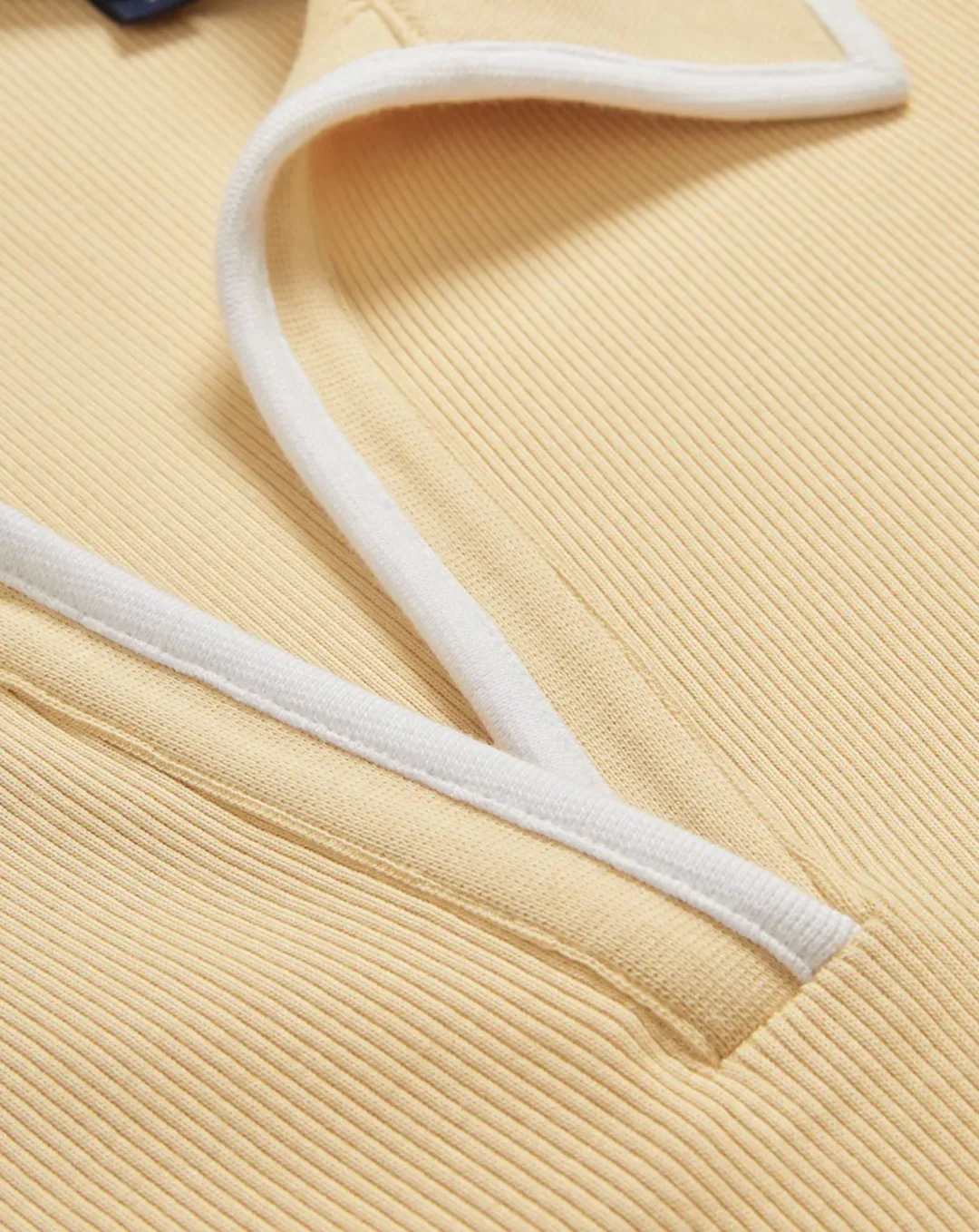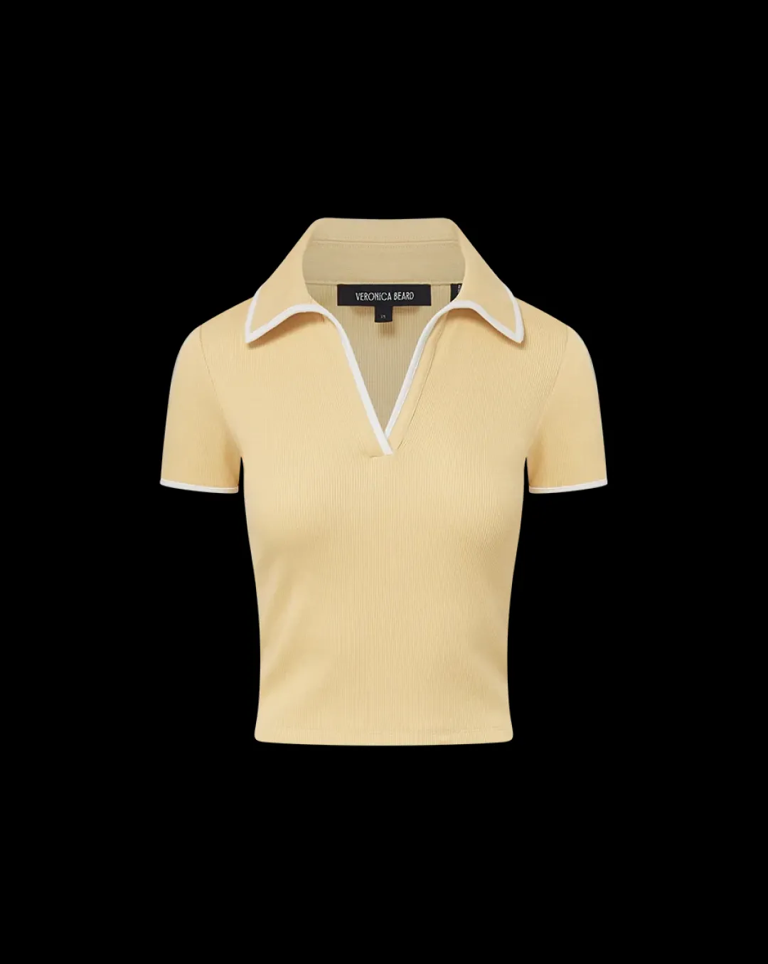 Your favorite polo is back in yellow, now with white contrast piping along the collar and sleeves and a buttonless placket for a minimalist feel. Cut for a slim fit from a stretch-cotton blend, it’s chic on its own or layered under a lightweight jacket for extra polish. Pair with wide-leg jeans or denim shorts for summer ease.