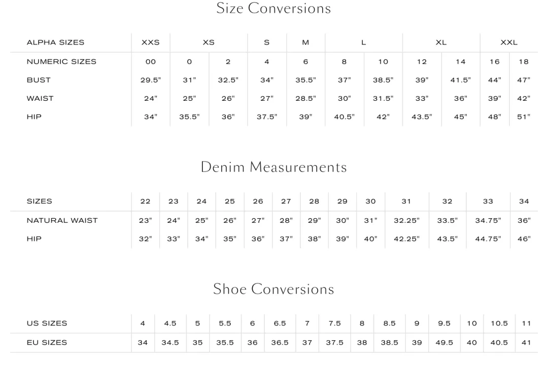 - Model Details: Height: 5′ 8’’ | Bust 32” | Waist 23″ | Hips 34” | Wearing Size 25