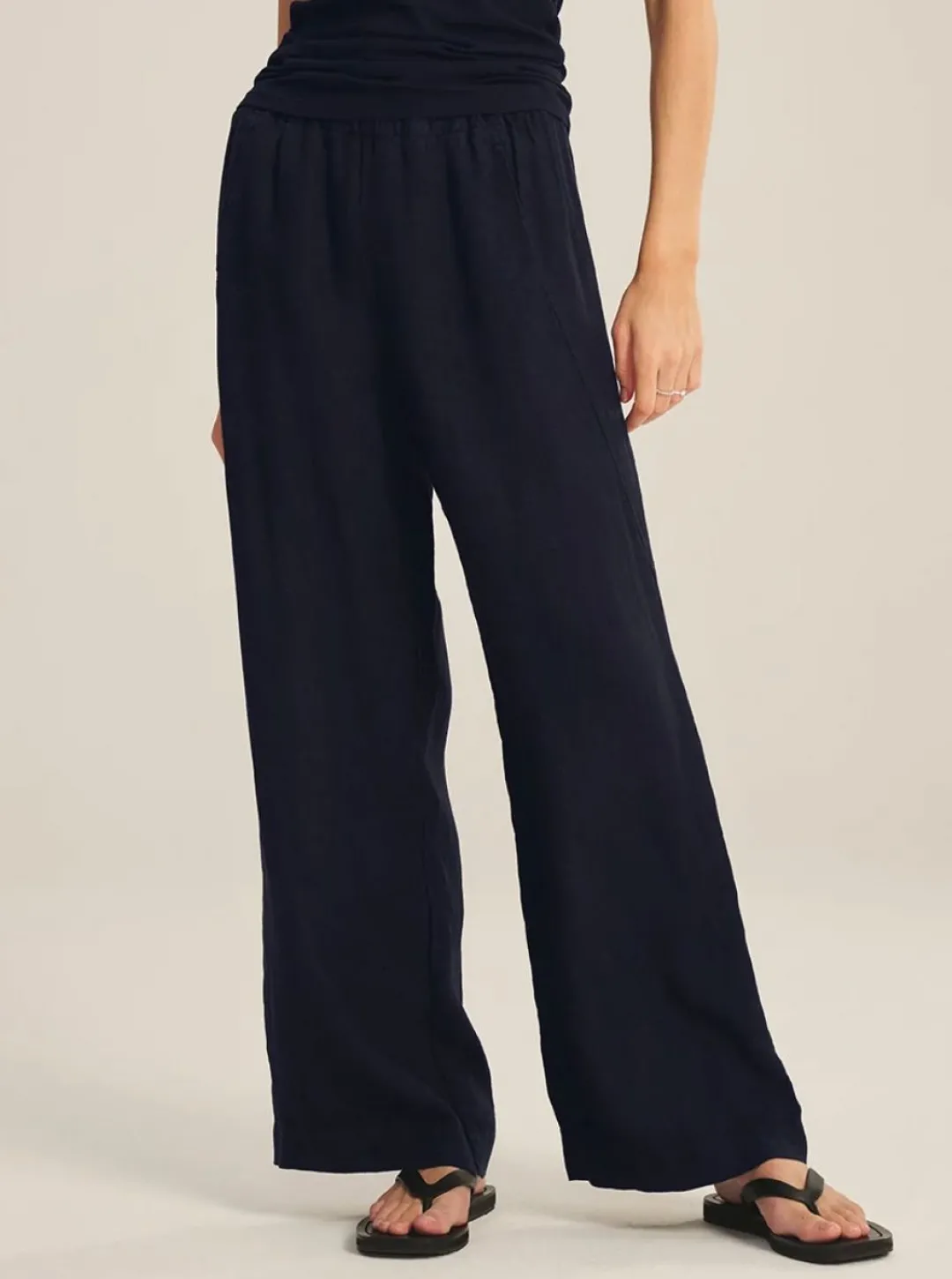 The perfect pant. Crafted from a lightweight linen woven, these pull-on trousers have an elastic waist, a relaxed leg with a slight ankle crop, and the perfect ease of a gorgeous warm weather day.