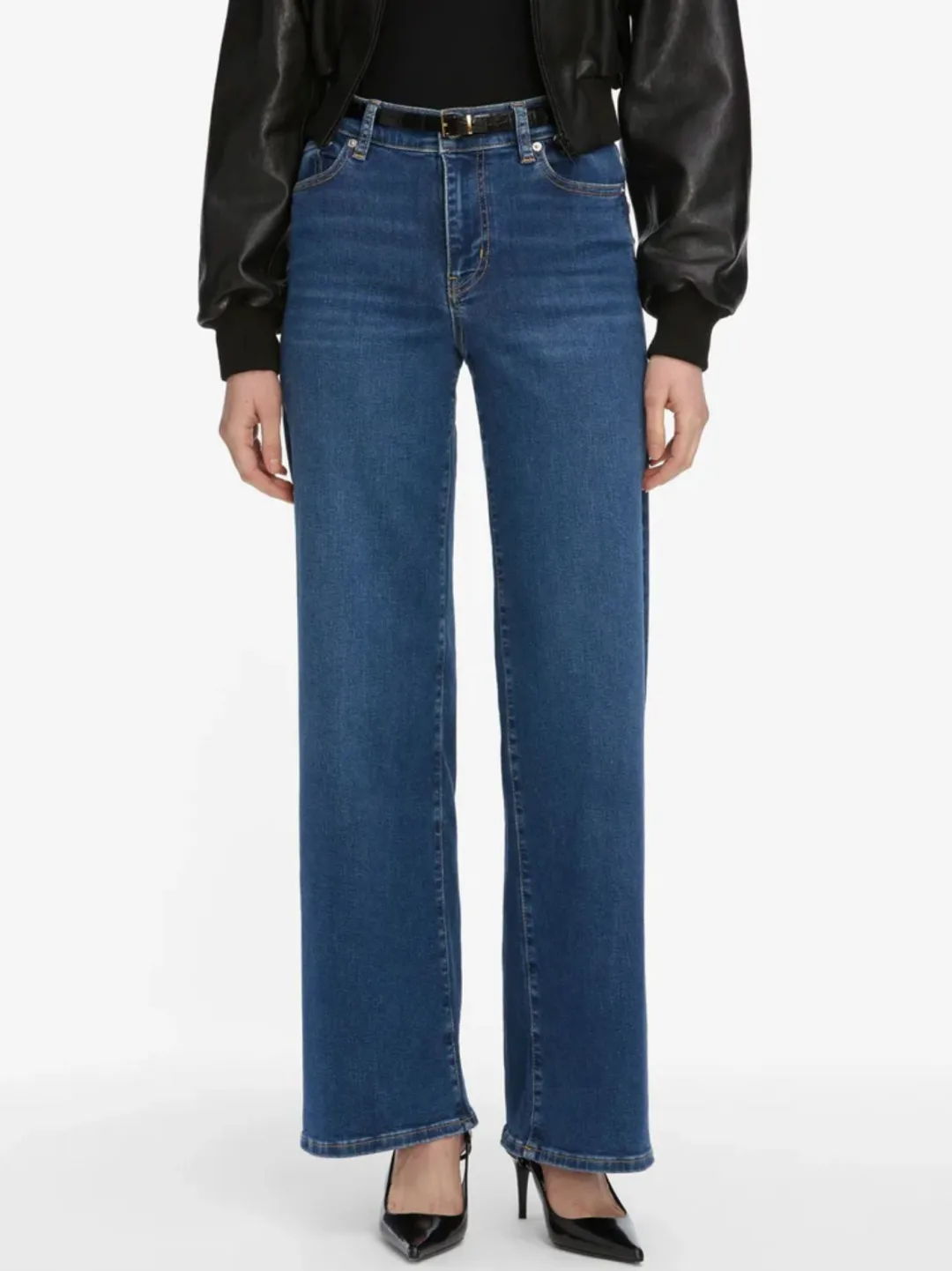 Wide leg low rise jeans crafted from sustainable super-stretch denim for effortless all-day wear.