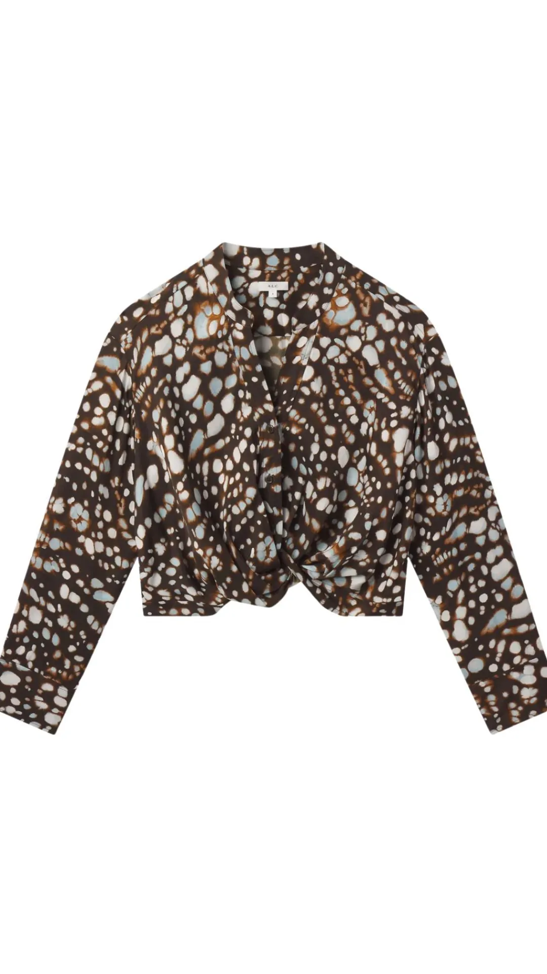 The Luca Top is crafted from viscose twill shirting in our Aria print. This button-front silhouette features a twisted front detail for a softly draped shape.