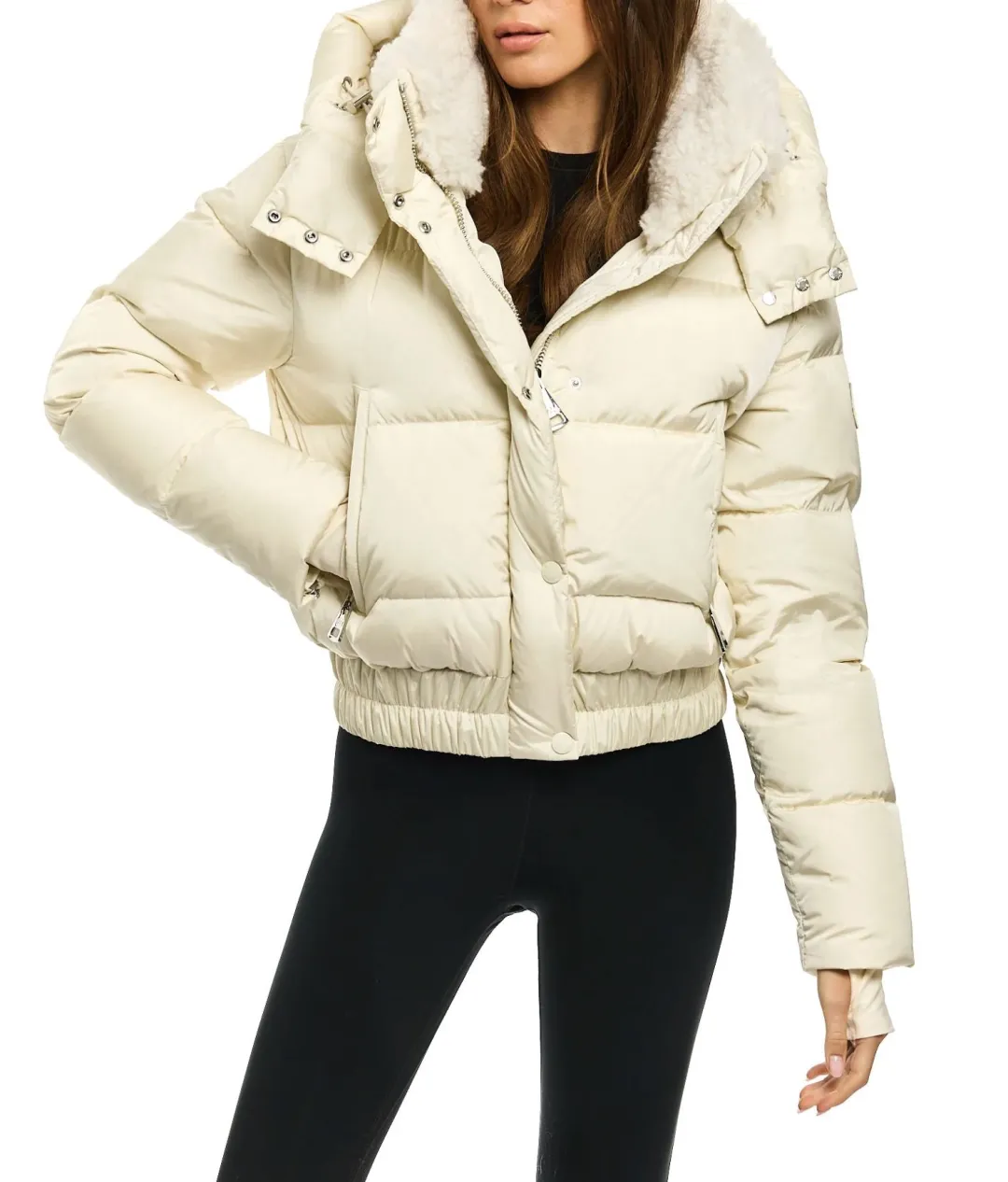 This quilted, bomber style, down jacket is crafted from a densely woven nylon, and filled with down to achieve warmth and an ultra soft feel. The Tyler jacket is lightweight, wind resistant, and water repellent, making it perfect for year-round wear and function. It features a sherpa trimmed stand collar, center front zip closure, a detachable hood, spandex thumbhole cuffs, an elastic waistband, 2 lower zip pockets, and snap sleeve and pocket detail.