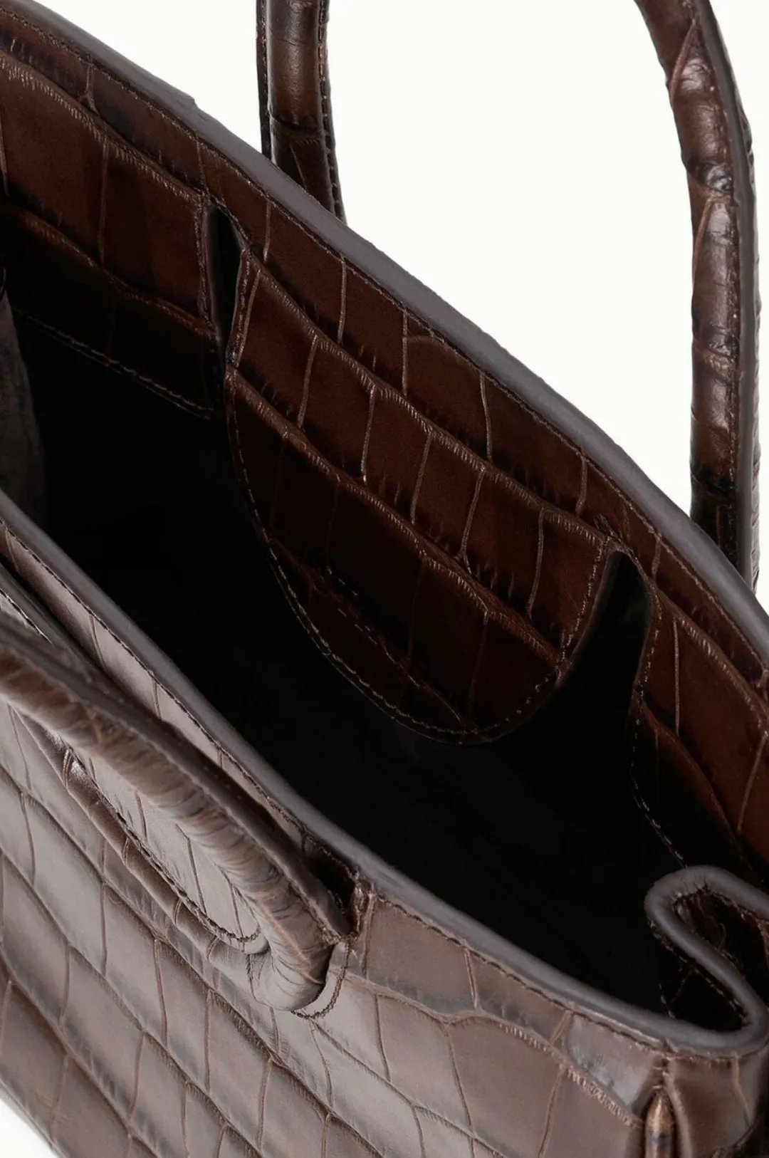 A mini version of our best-selling Maude Carryall, this handbag features signature Maude flap closure, oval handles, and knot-tie detailing and comes with a long removable strap.