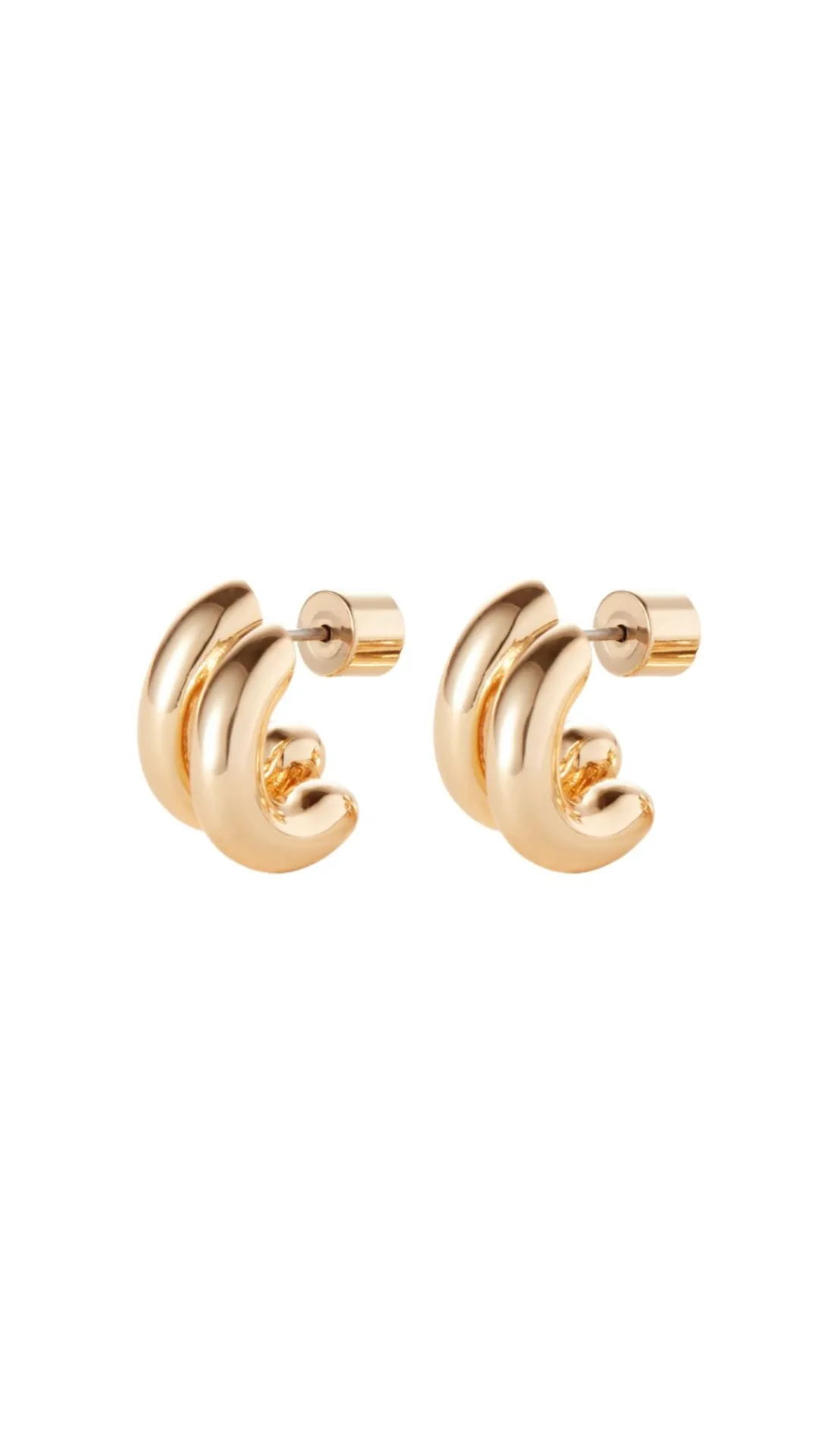 JB’s most talked-about earrings in a shrunken size. This custom design wears like a huggie while creating the illusion of two hoops stacked together. Plus, they’re micro-light so you won’t even feel them on. Finished in high-polish gold.