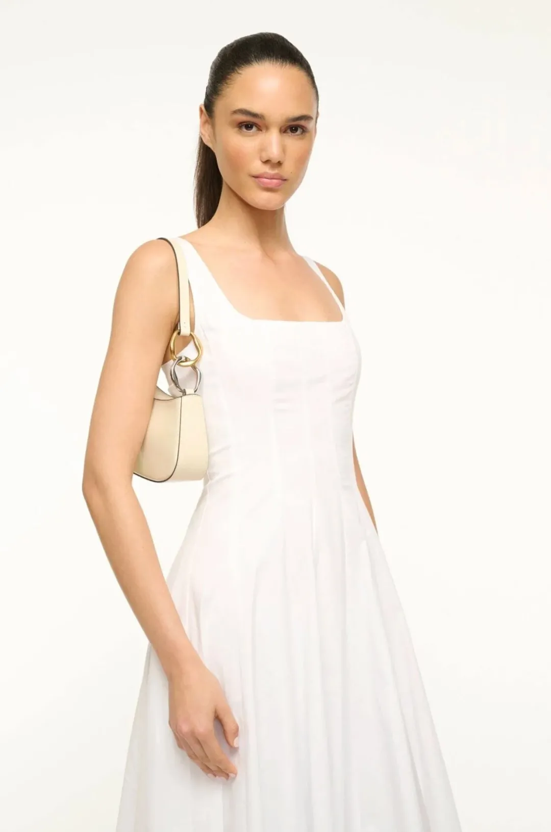 STAUD’s Ollie shoulder bag is crafted of smooth leather and flaunts a two-tone metal detail at the handle.