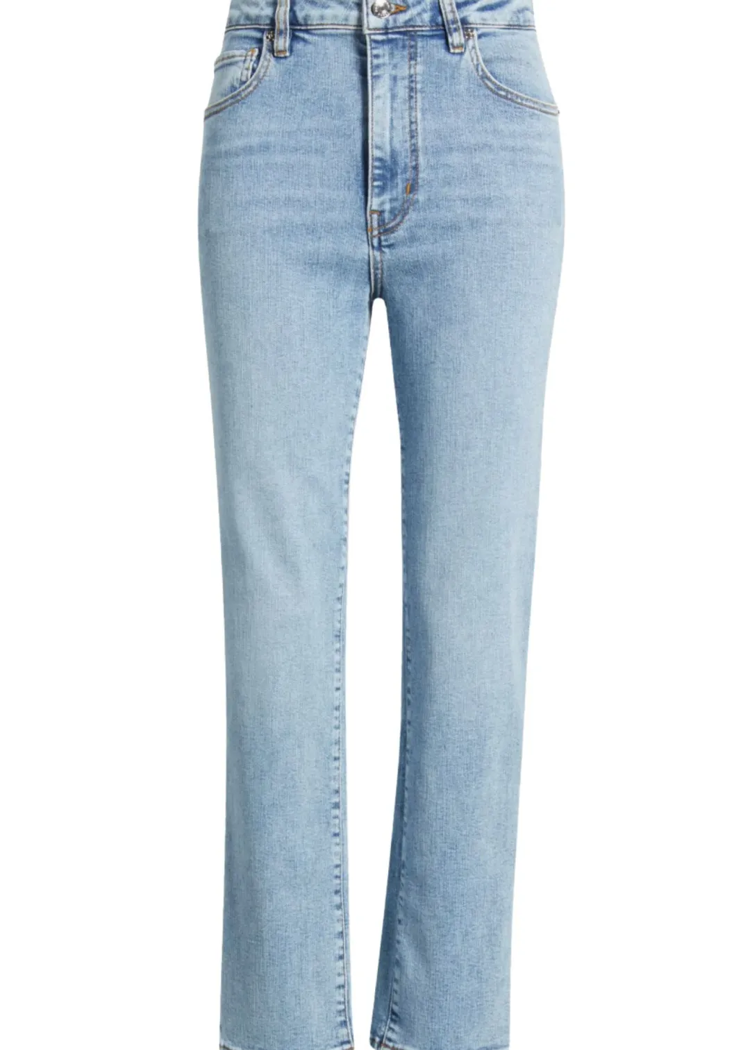 A slimmed-down version of classic straight-leg jeans, this ankle-length pair is cut from superstretchy denim made partially from recycled fibers.