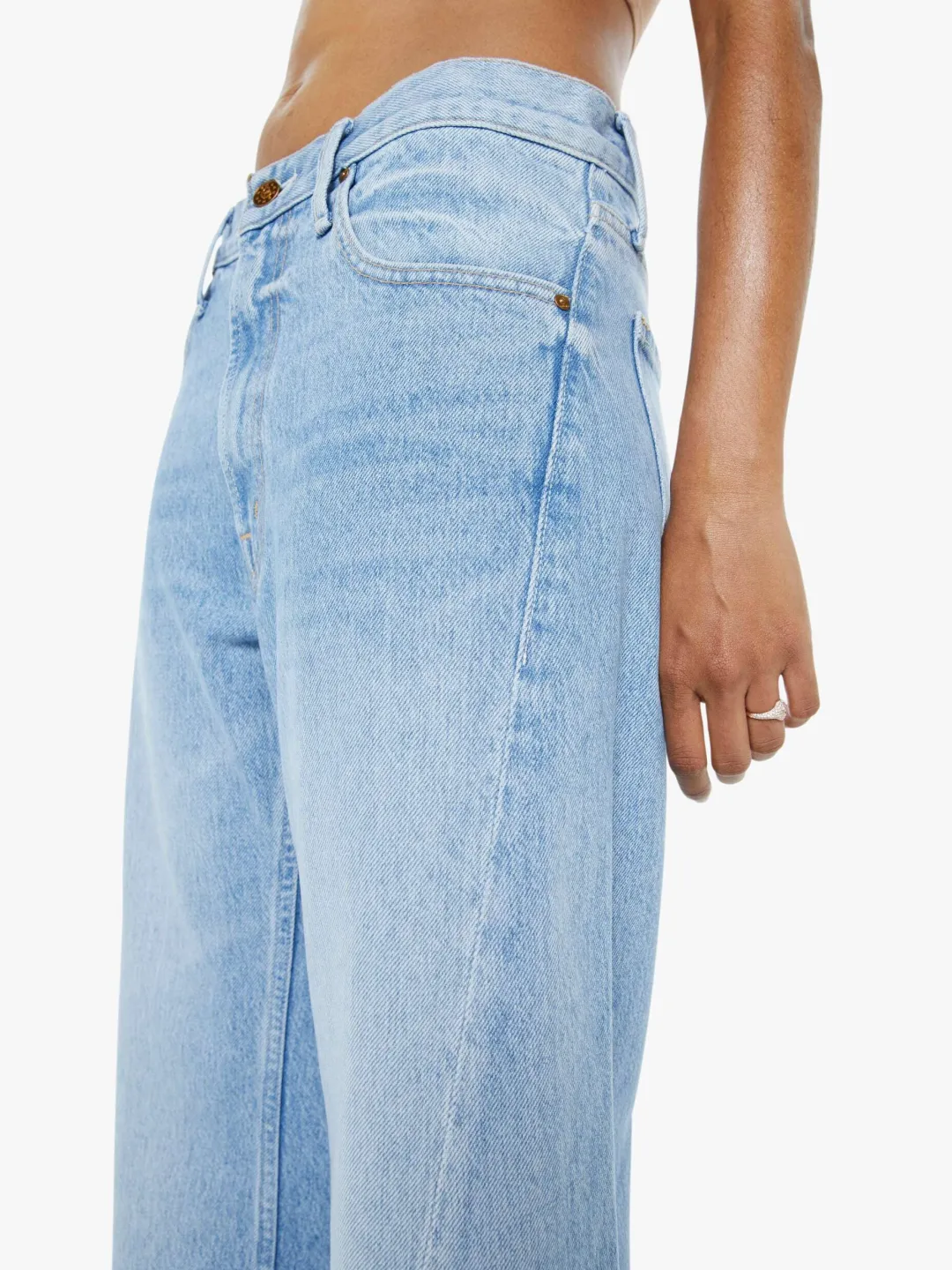 The Lemon Twist Jeans by Mother Denim are high-waisted, wide-leg jeans. They feature a distinctive curved outer seam which adds a unique stylish detail to the silhouette. The jeans come with a clean hem, offering a polished look. These jeans provide a retro flair with their design while elongating the wearer’s figure through the eye-catching seam details. These jeans are rigid and take time to break in. MOTHER says patience is a virtue.