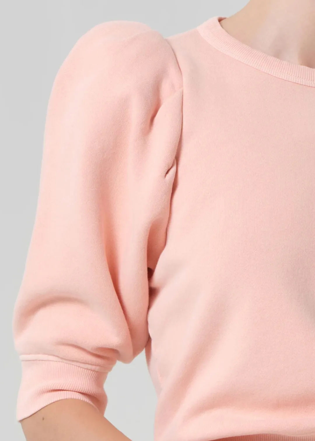 The Pleated Short Sleeve Crew combines soft structure with everyday ease. Crafted from sueded fleece made with regenerative cotton, it offers a luxuriously smooth hand and gently sculpted shape. Pleated sleeves add subtle volume, balancing a modern silhouette with refined comfort.