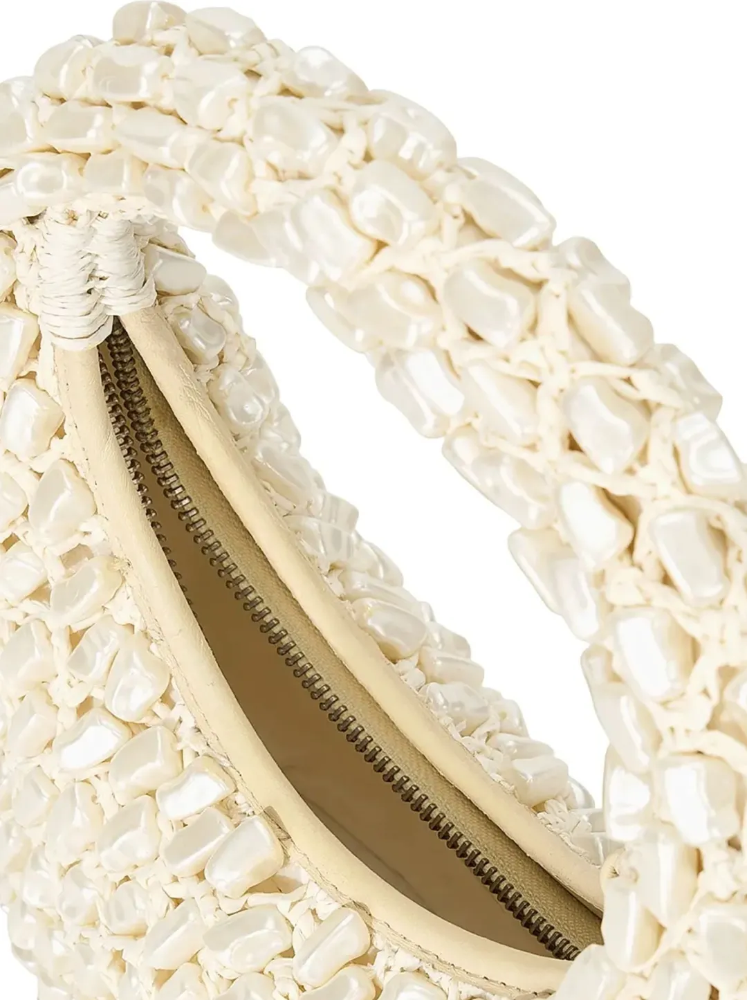 Staud’s Reef top-handle bag features a woven silhouette detailed with shells.