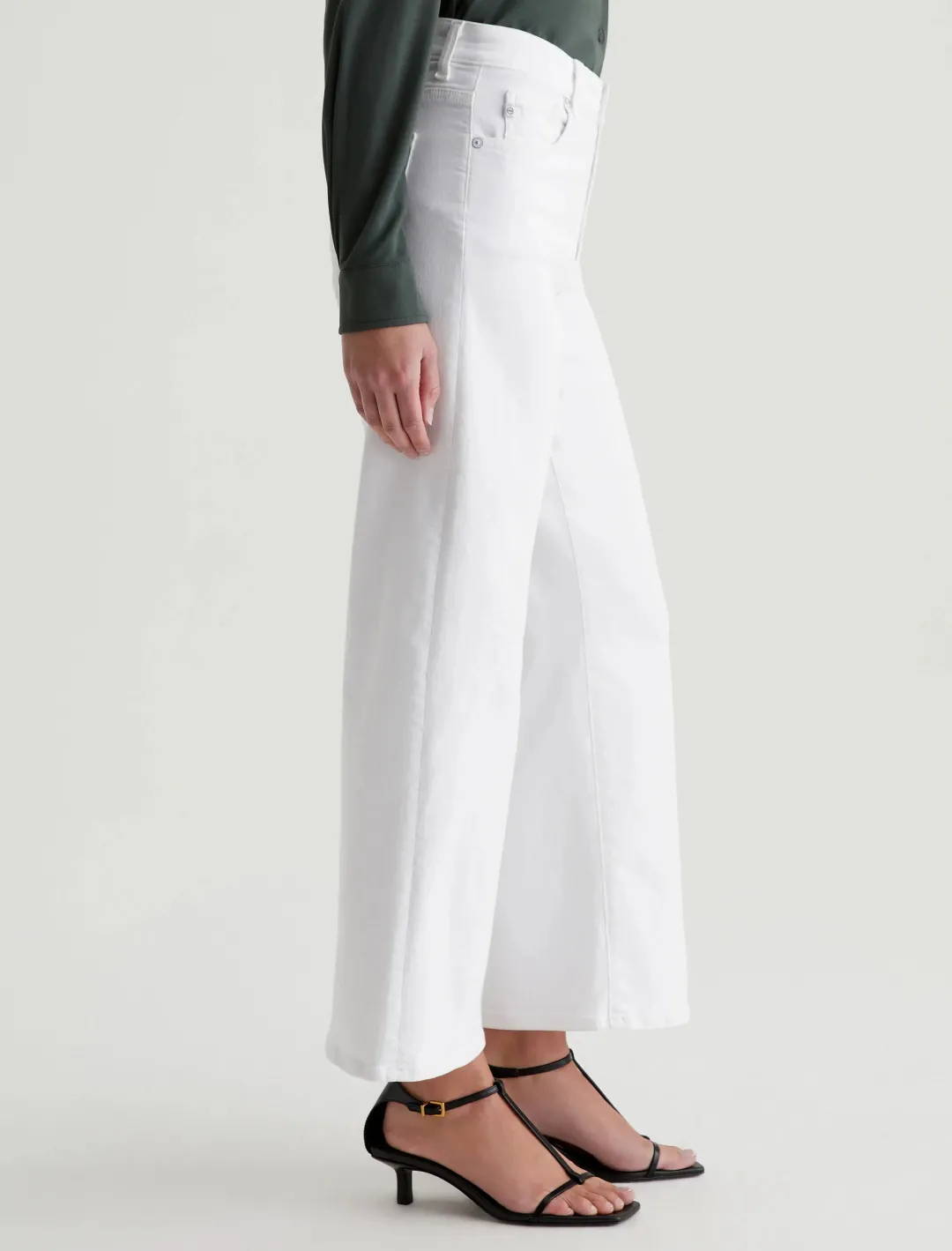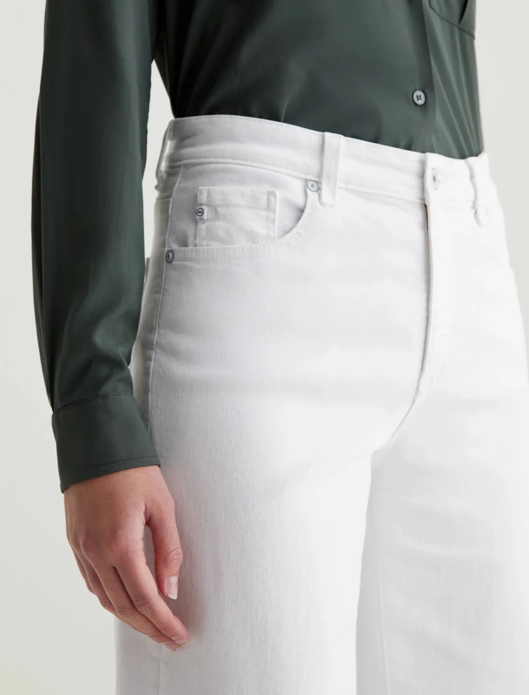 The Saige Wide Leg Crop has a mid-rise waist and loose, cropped legs. Done in fresh white, these women’s wide-leg pants feature Cloud Soft Stretch Denim, an exclusive AG fabric with special left-hand twill construction that’s designed to get softer with every wear.