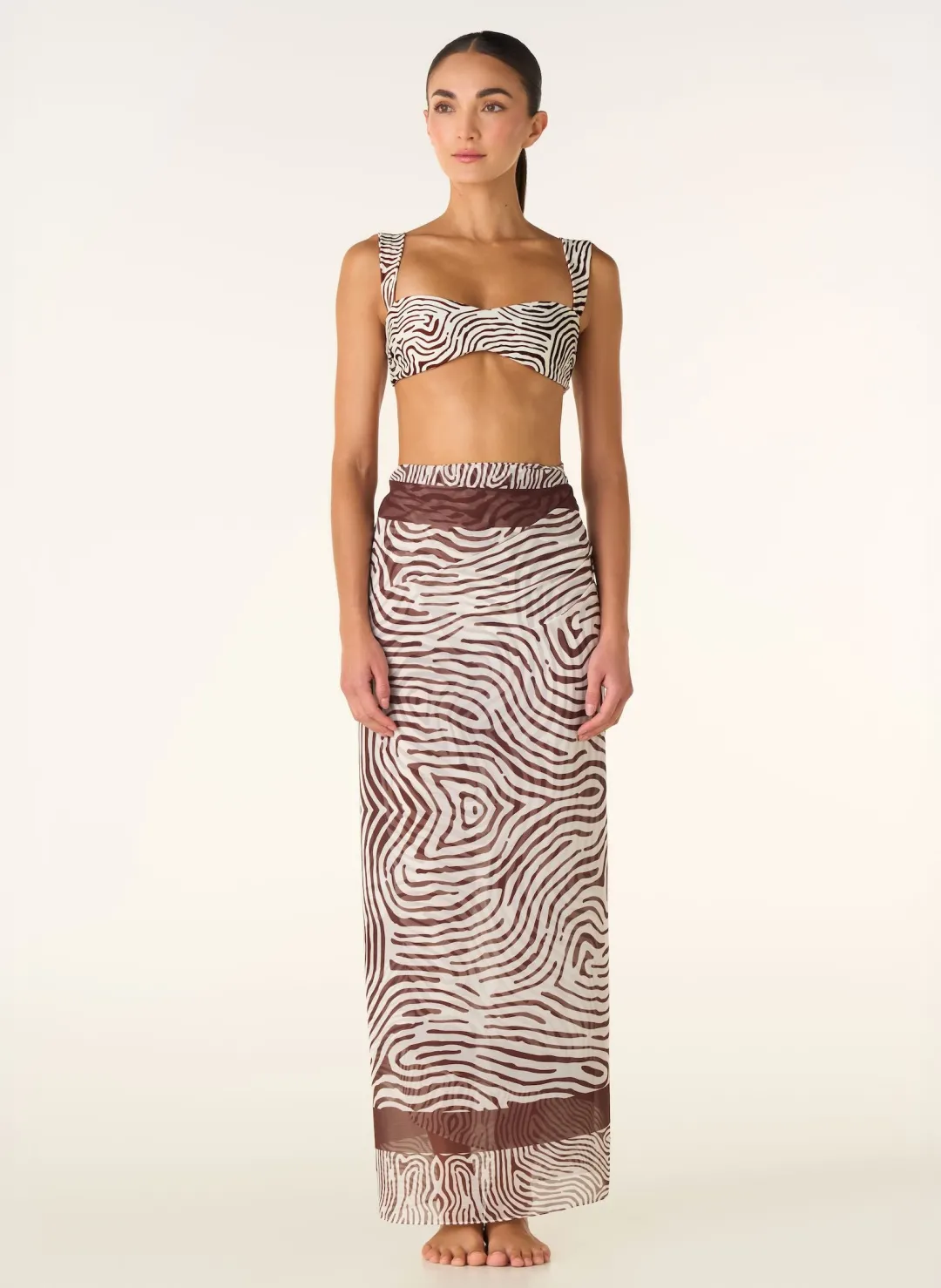 The Sarong Pareo Sullu stands out for its light texture and fluid movement. Made from semi-sheer fabric with an animal-inspired print in earthy tones, it can be styled in multiple ways — as a skirt, dress, or beach cover-up. Its soft drape makes it an elegant essential to complete the Sullu swimwear line.