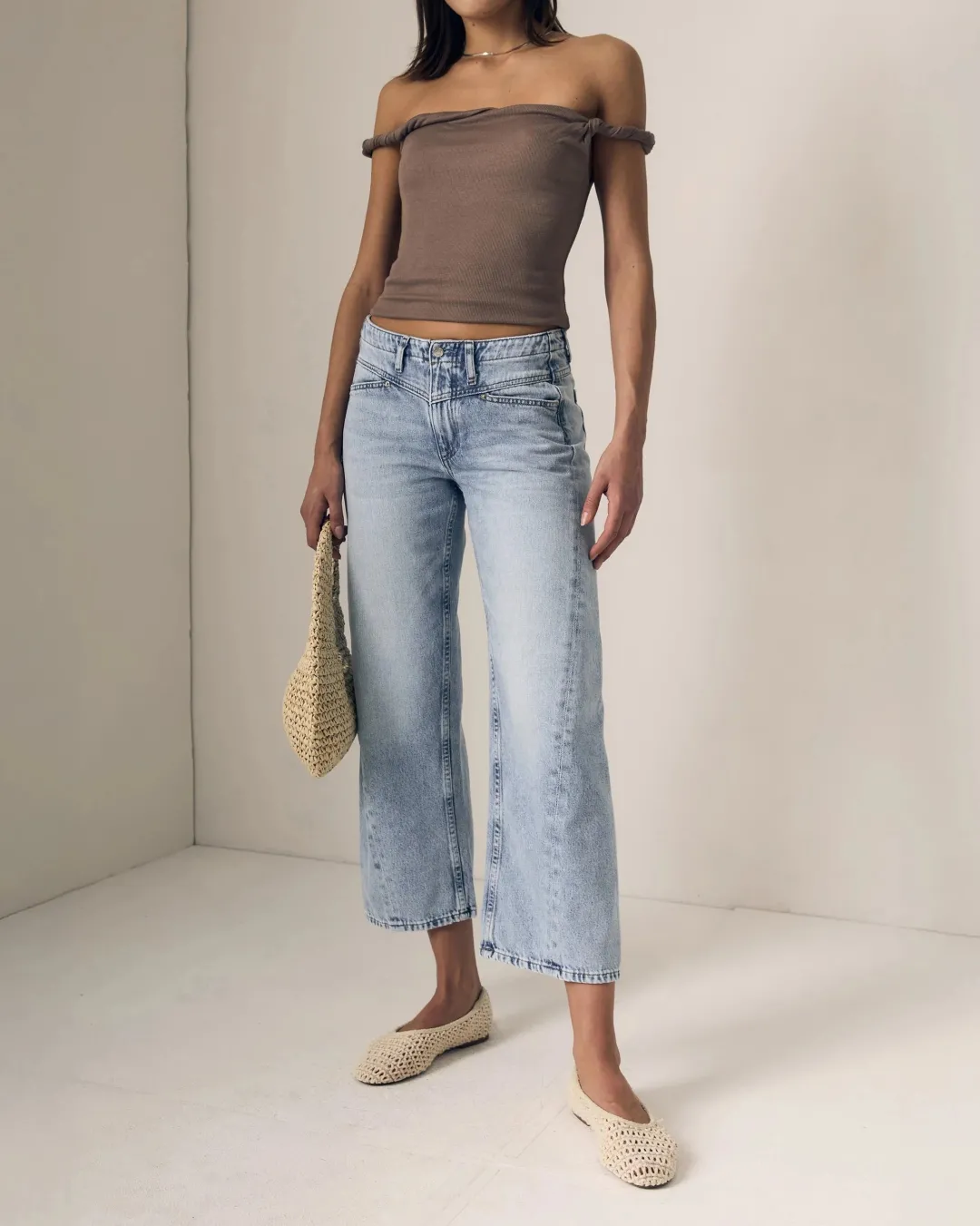 The mid rise Selena Crop is a vintage inspired relaxed fit has a button fly and sits fitted through the hips and thigh with an cropped length inseam. The relaxed leg drapes to perfection in a comfort stretch denim. Made in Los Angeles