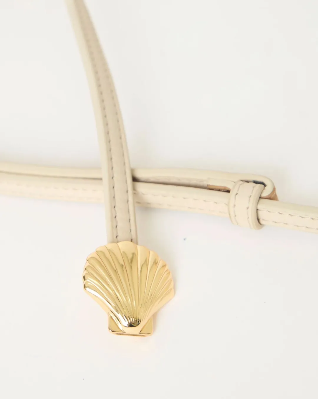 Add a subtle statement to your looks with the Shelbi belt. Designed with a shell detailed clasp buckle on a thin leather strap, this waist belt features intricate edge stitching and a fully adjustable strap.