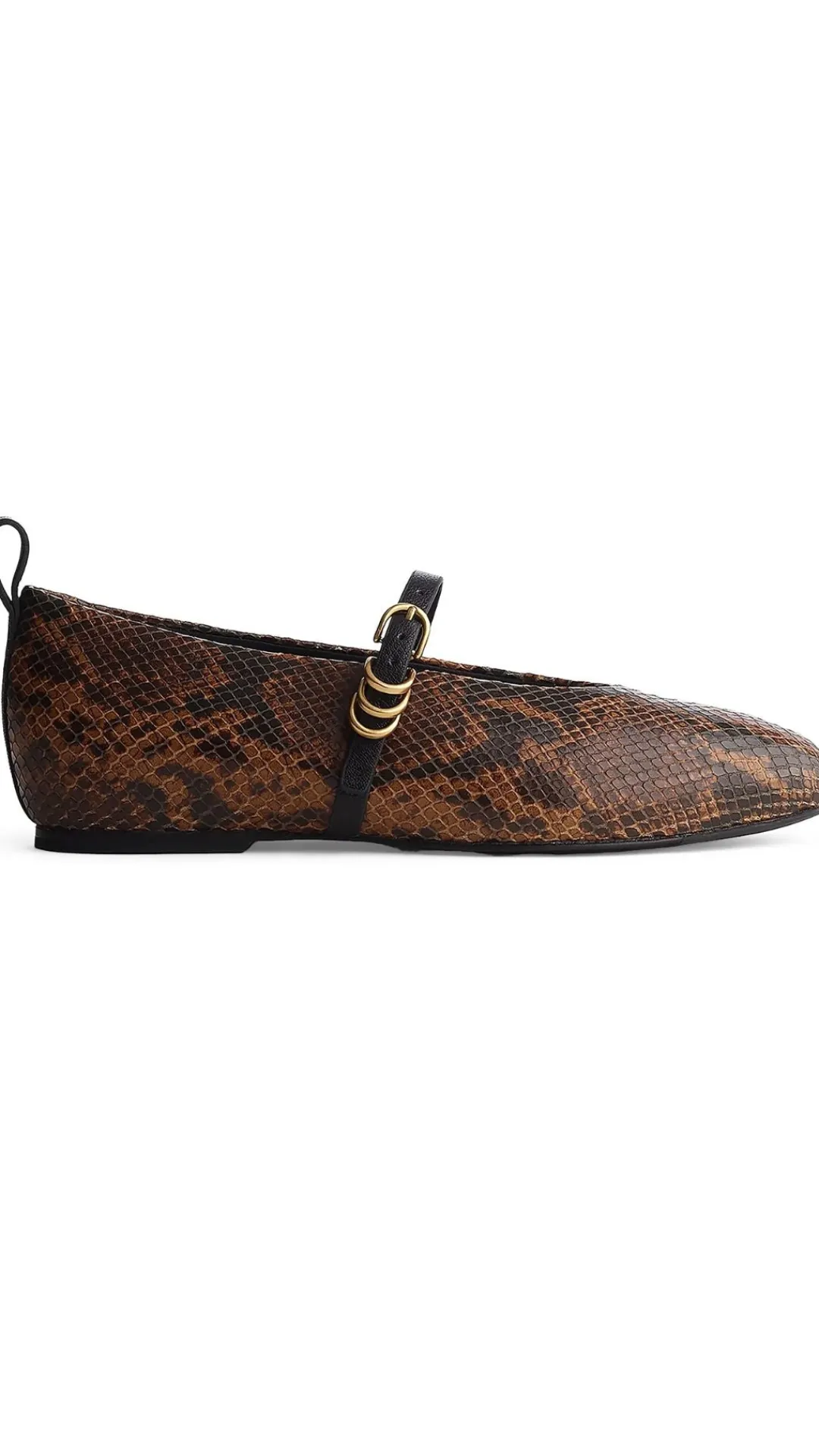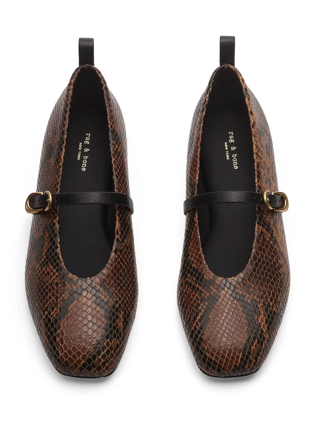 These rag & bone Spire Mary Jane flats are crafted of snake-embossed leather and styled with an adjustable strap.