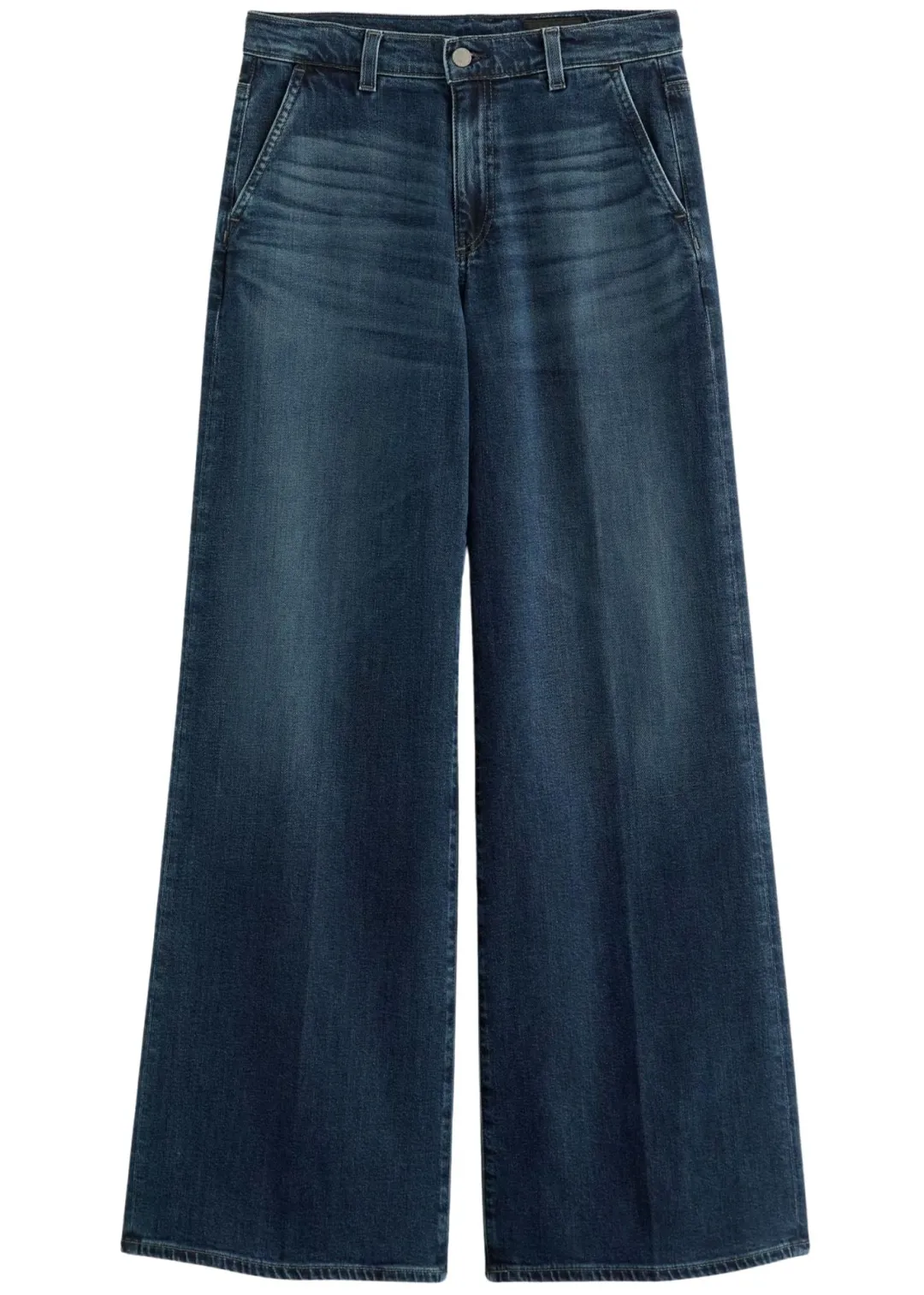 Superwide legs flow with every step you take in these mid-rise palazzo jeans made from stretch-kissed denim in a day-to-night rinse.