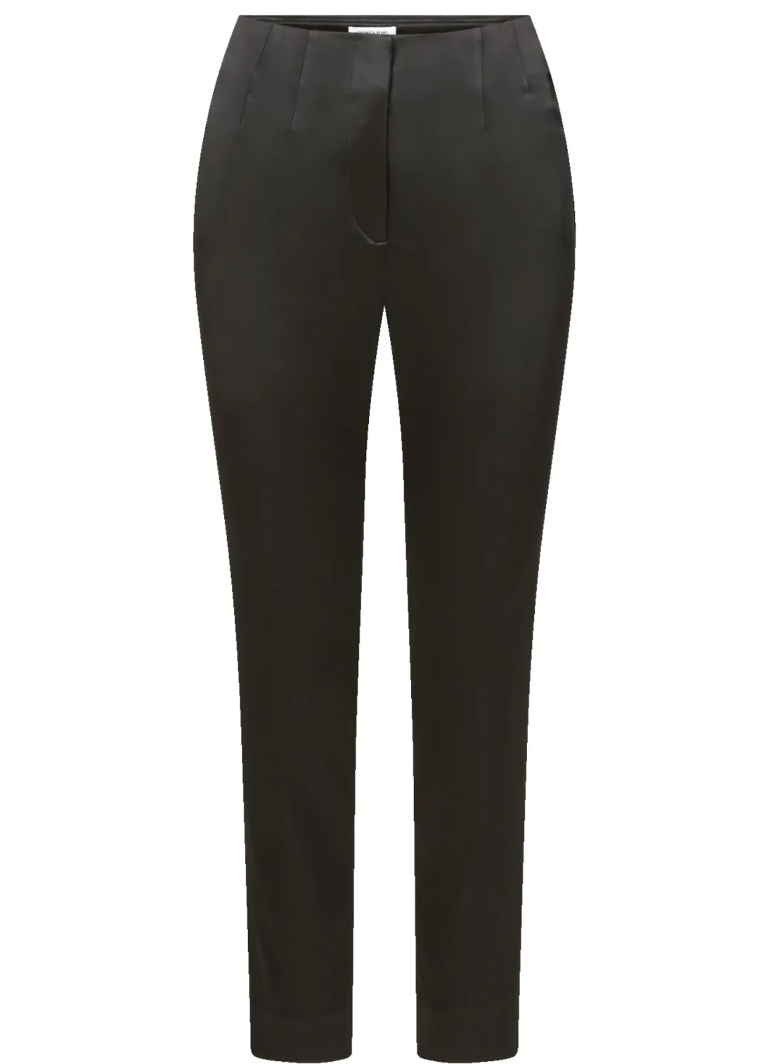 A sleek dress pant with versatility. Expertly tailored in the USA from premium Italian satin, the Stila’s high-rise Hollywood waistband defines, while its slim, straight leg elongates—cropped at the hem to show off your shoes. Welt pockets and a concealed hook-and-bar closure create a clean, streamlined finish. Pair this black trouser with an oversized shirt or sweater to elevate the everyday—or with the coordinating Cynthia satin jacket for a chic tailored set.