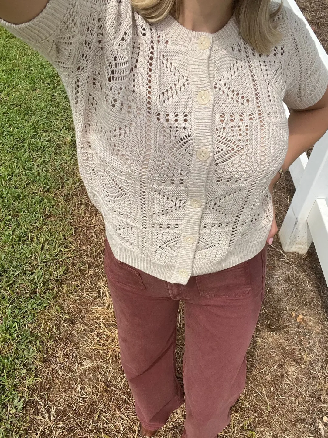 Wide leg pants with a high rise, 32-inch inseam, patch pockets and a clean hem. Made from a cotton blend with a touch of stretch, the pants are designed in a rust brown with subtle fading and tonal hardware. Cats and Dogs.