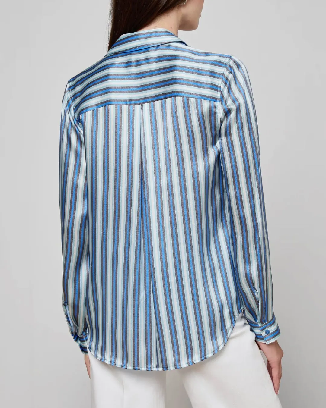 Meet the iconic long-sleeve silk button-down that belongs in every wardrobe. Reimagined each season in fresh colorways and prints, there’s a Tyler for every occasion. This L’AGENCE bestseller is now back in a blue stripe print.